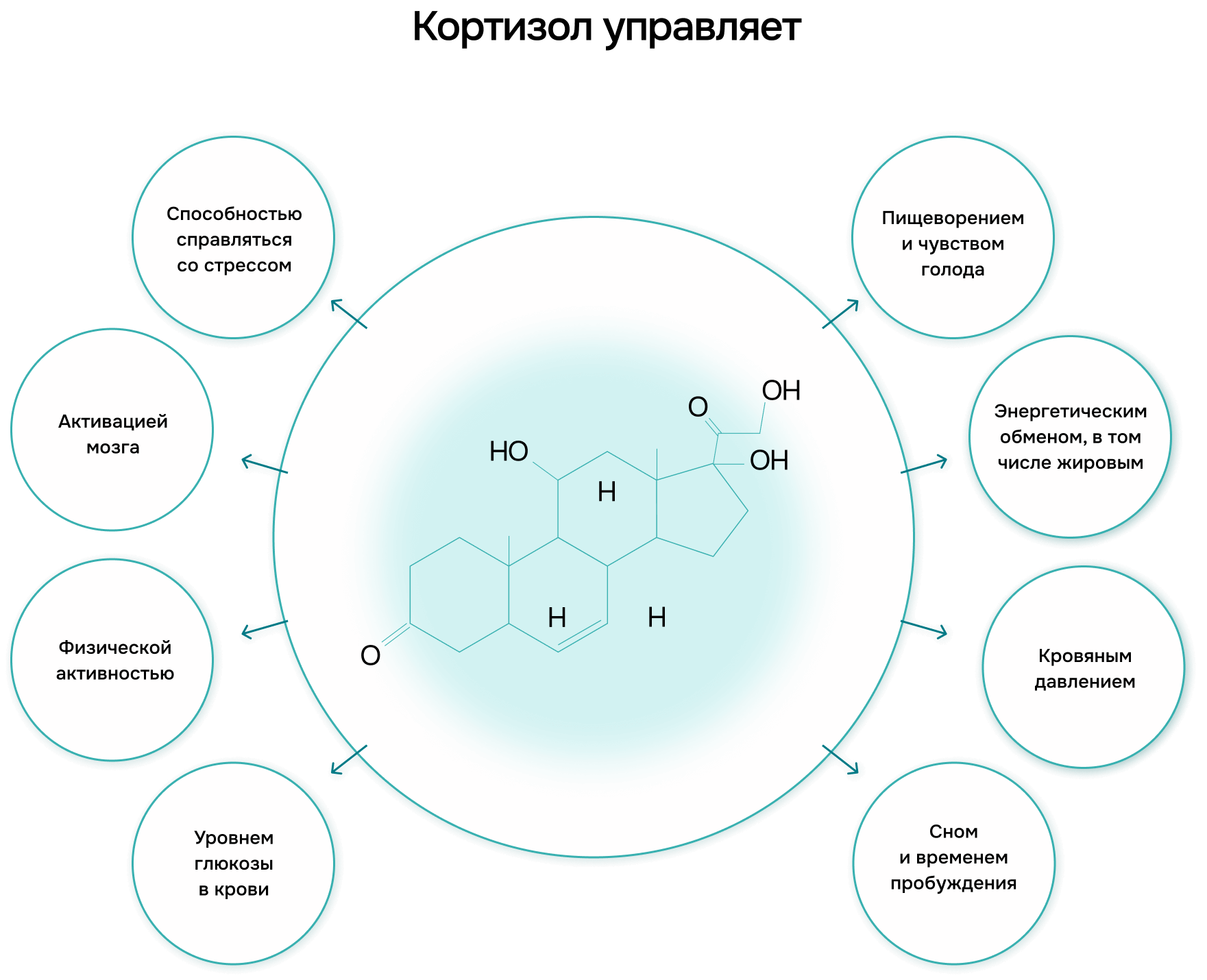 - Провоцирует неконтролируемый голод. Длительно высокий кортизол повышает уровень нейропептида Y в мозге, который усиливает аппетит, особенно тягу к сладкому и жирному. Организм требует быстрой энергии для мнимой «борьбы».