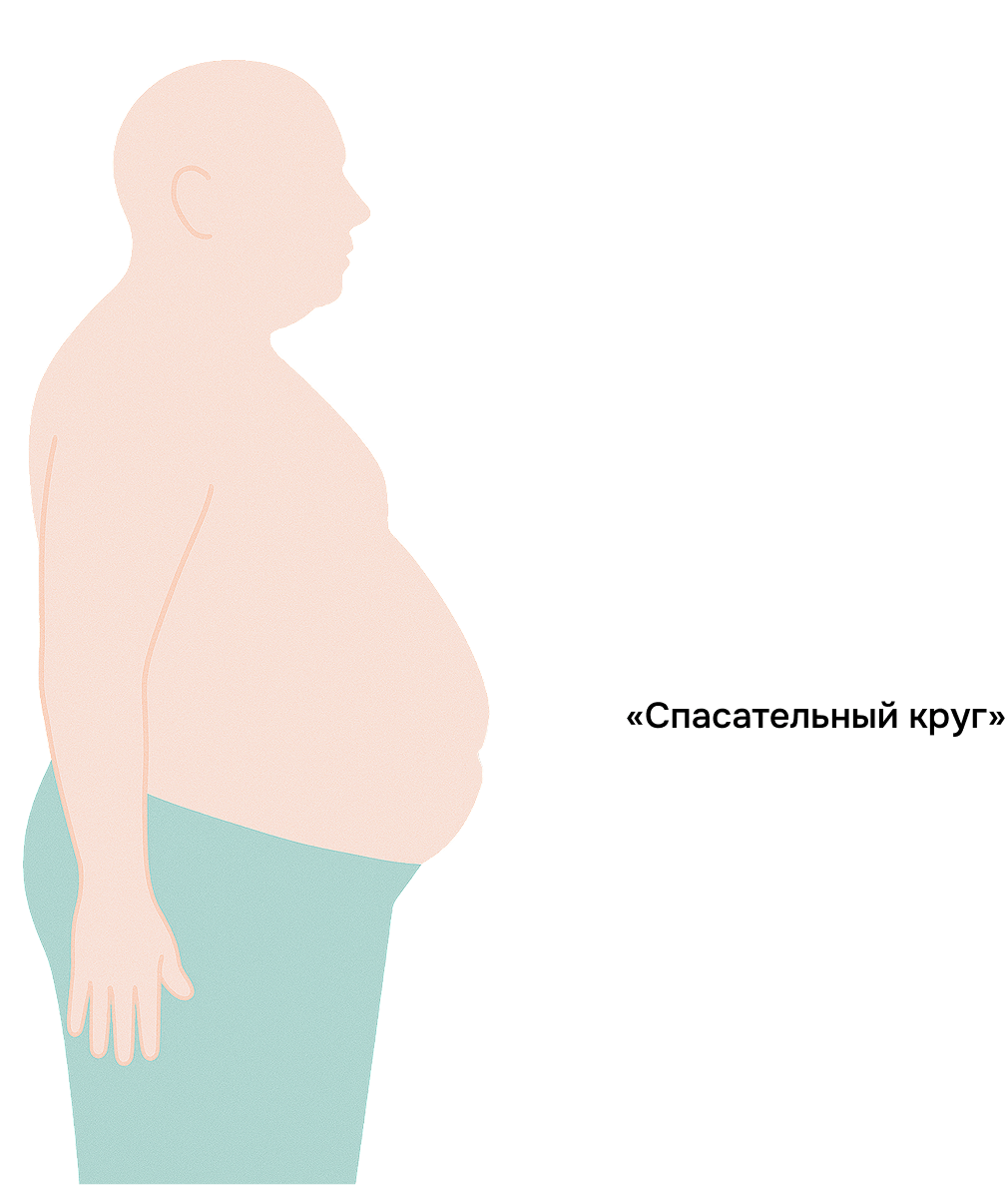 - Стимулирует отложение жира на животе. Висцеральный жир в области талии имеет наибольшее количество рецепторов, чувствительных к кортизолу. Поэтому стресс буквально «складывается» у вас на животе, формируя тот самый «спасательный круг». В статье «Как убрать живот» мы детально разобрали не только роль кортизола, но и все другие причины появления висцерального живота, а также его серьезные риски для здоровья.